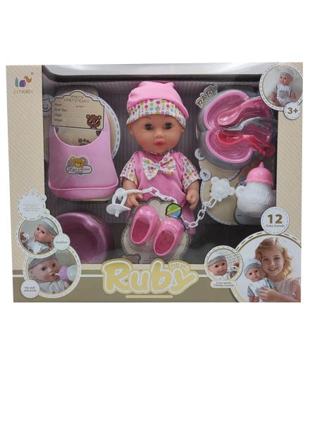 EPT1421563 12 Inch English 12 Sound Ic Water Baby Dolls Toys With Urine Basin Diaper Absorbent Bottle Tissue Box Backpack
