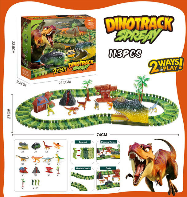 * Dinosaur Themed Race Track - Create unique dinosaur train tracks of dinosaur world. A good interaction toy for boys and girls.