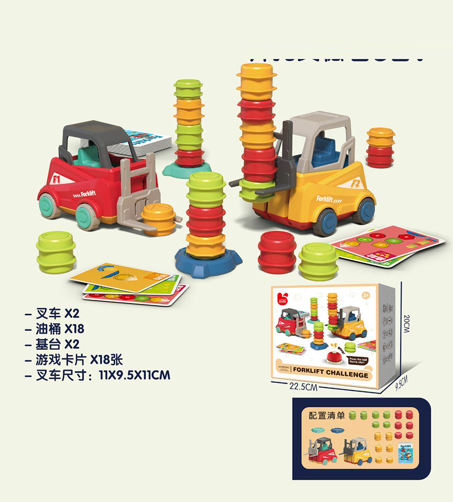 * 【FORKLIFT TRANSPORT GAME】: Simple and easy to play, randomly turn over the cards, stack the oil barrels according to the cards, transport the oil barrels to the designated location, put down the oil barrels, whoever runs faster wins. Stack the oil barrels according to the cards and transport them to the designated location, press the bell to win!