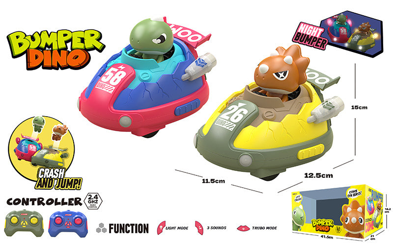 * 【Boom, Pop-up! Win】The Dino RC racing cars set enables exciting competitions, where bumping the side of a car triggers a pop-up action for the figure toy, signaling the victorious party.