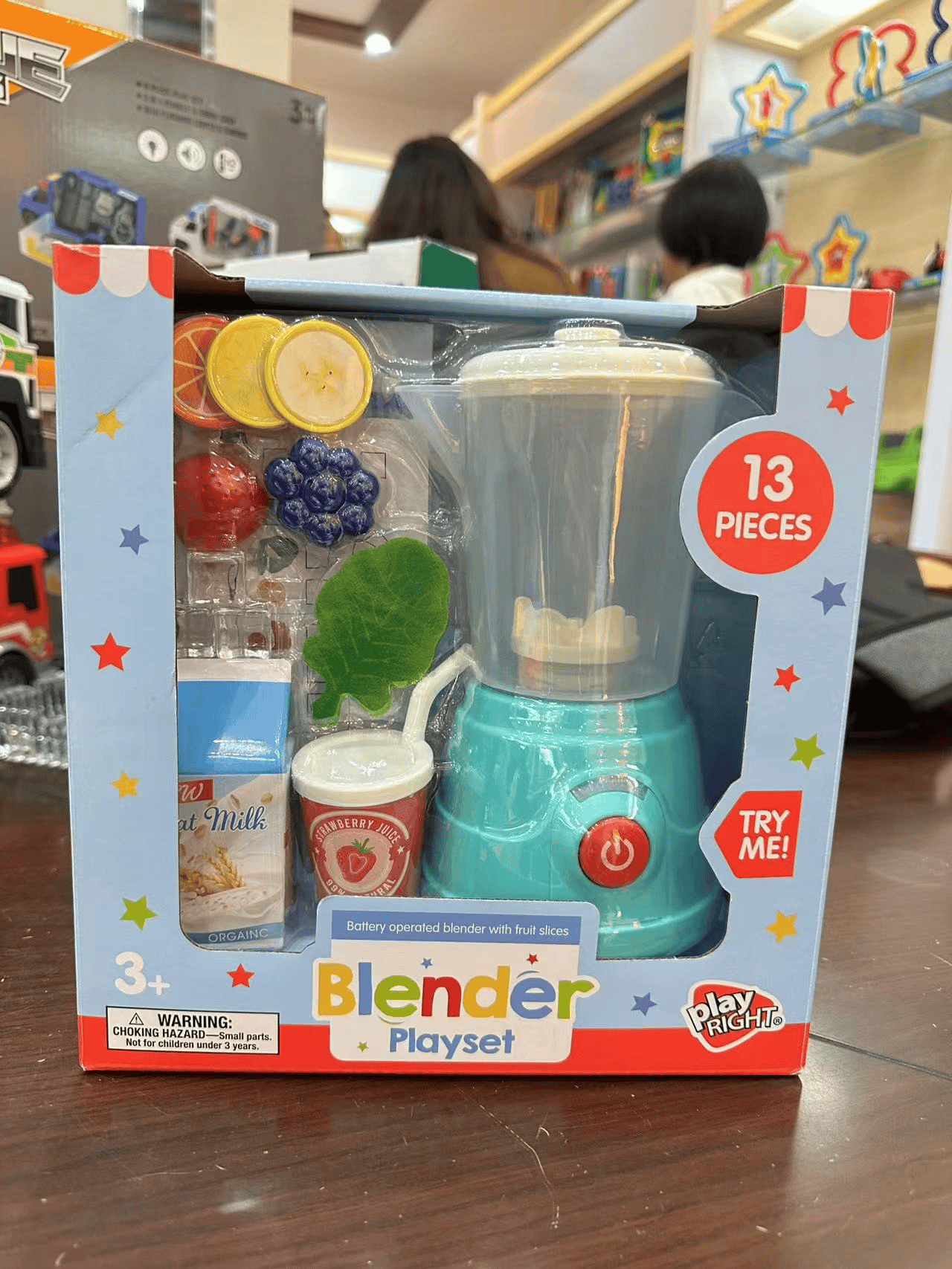Whip up delicious pretend smoothies and juices with this fun blender playset! This realistic blender features lights and sounds for an immersive play experience. Kids will love pretending to blend their favorite fruits and vegetables. Perfect for encouraging imaginative play and developing fine motor skills. Blue.