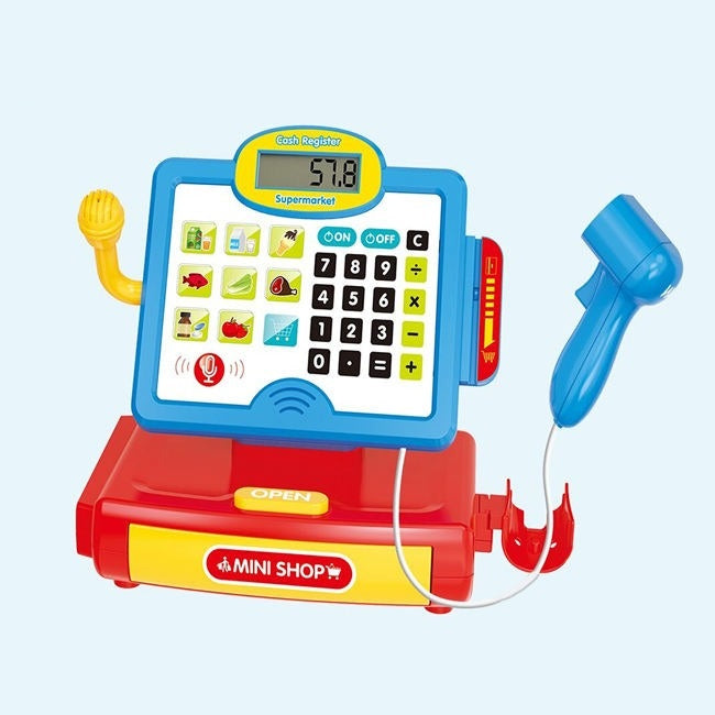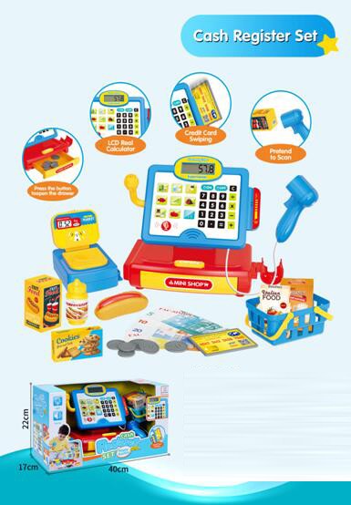 Simulate supermarket casher shopping set electric sound and lights toy cash register with scanner