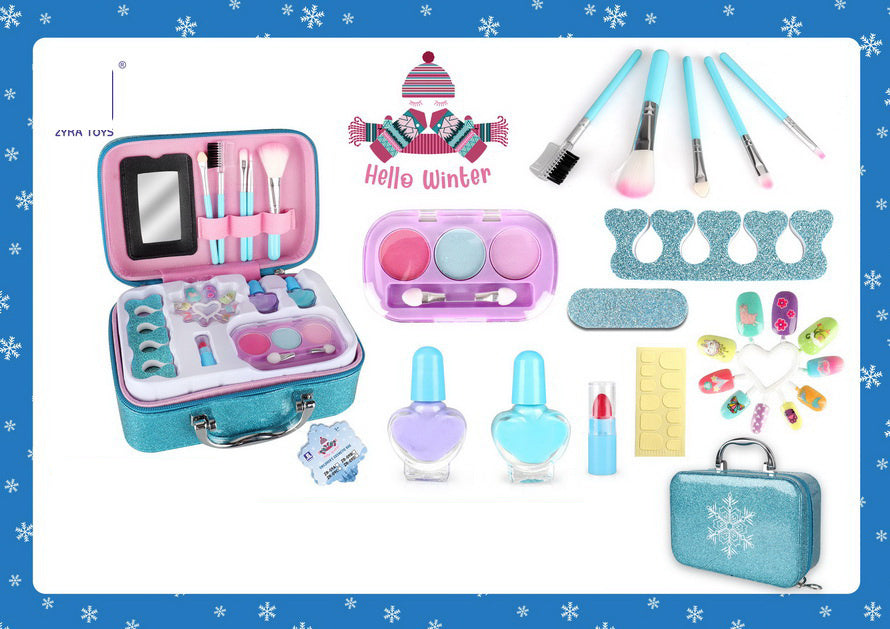 Kids Princess Dress up Kit Nail Polish Beauty Blue Cosmetics Bag Set Real Children Makeup Toyfor Girls
