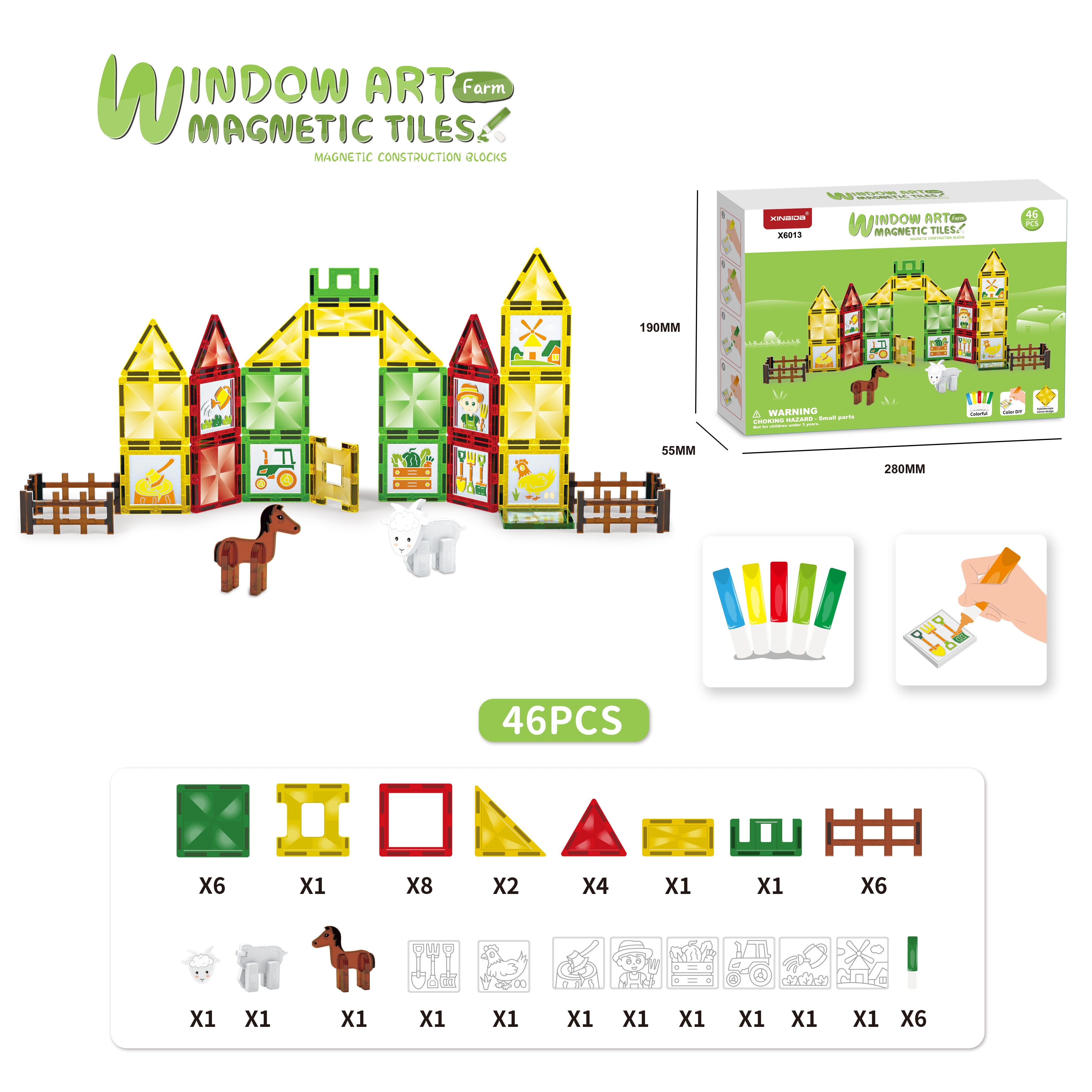 2024 Hot Sell Magnetic Tiles Farm Series Learning Toys Building Blocks With Colorful Glue DIY Painting
