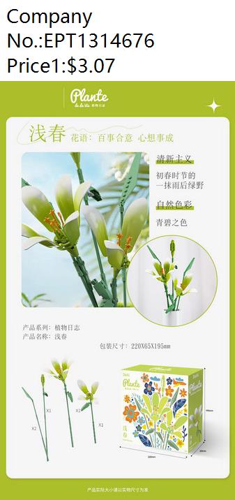 Parts compatibility is high: The parts of some brands of building block flower toys have good compatibility. They can not only be matched with other building block sets of the same brand, but also compatible with building blocks of other well-known brands. For example, Fermi Children's Flower Shop flower building blocks are compatible with Lego building blocks, which enriches children's play methods and allows them to create more unique works.