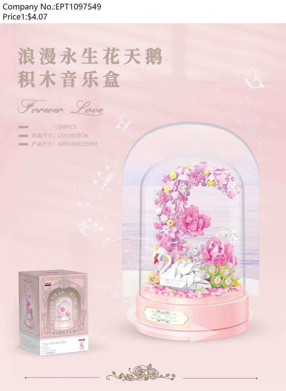 Color box love series building blocks-eternal flower swan/with light 566PCS