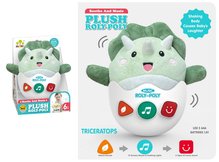 ULTRA SOFT PLUSH TODDLERS TOY: The animal's texture is made of short velvet fabric, which is gentle on the baby's skin, no shed, no fade. The roly-poly body part is made from plastic. You can feel confident that your baby is playing with a safe, comfortable, and durable light-up toy. 2 AA batteries are required (not included).