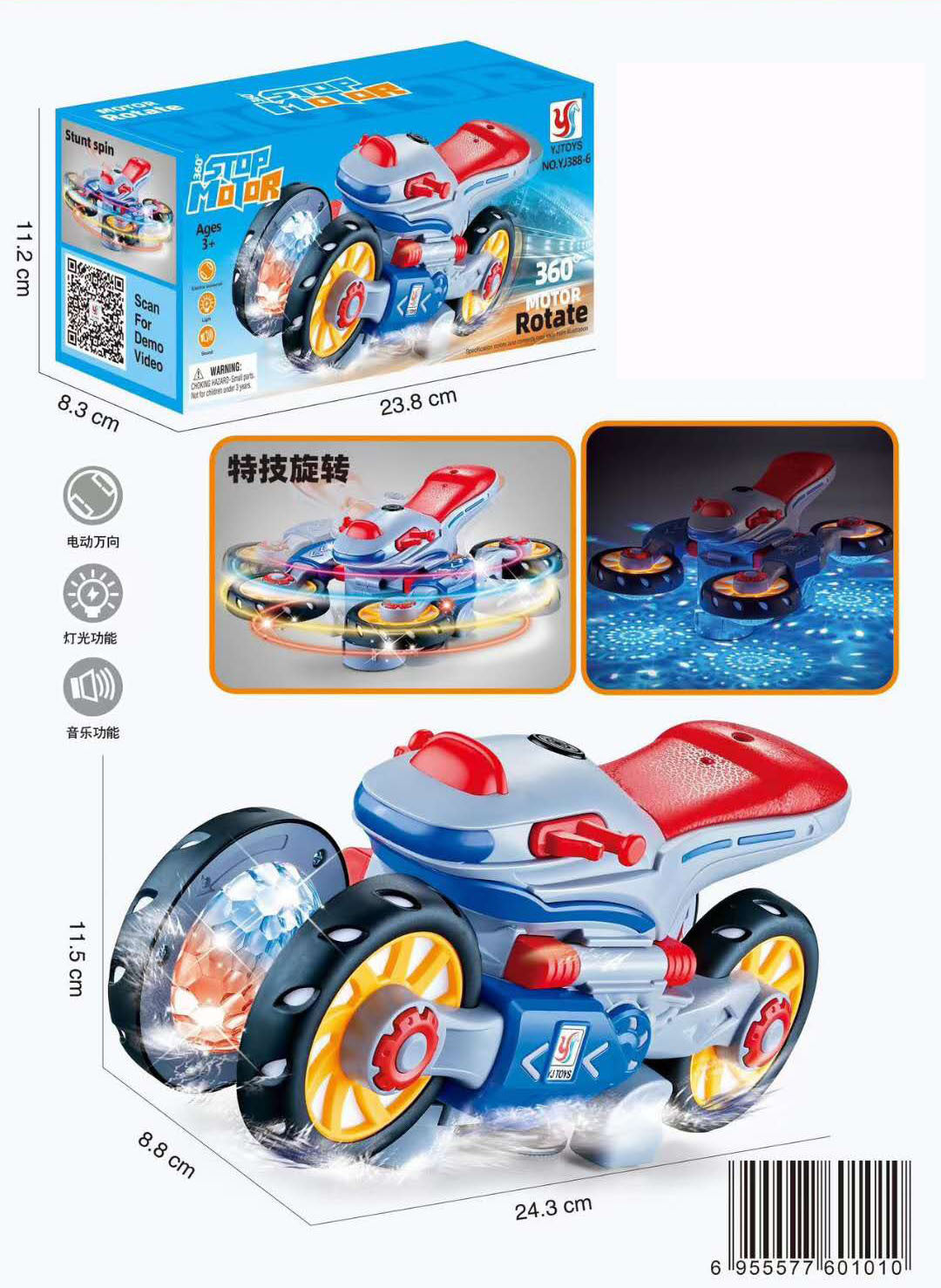 【Flexible & Thrilling】Our motorcycle musical toy is equipped with gyroscopic technology and an advanced steering system that enables it to perform 360° high-speed spins automatically when the wheels lift off the ground. This exciting sensory toy offers a fun-filled experience that sparks imagination and creativity.