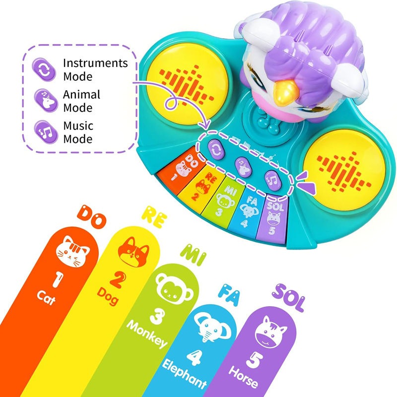3.学习和教育婴儿玩具:婴儿音乐玩具提供多种模式,帮助婴儿学习数字、颜色、乐器和动物。通过敲鼓或弹奏钢琴键盘来增强宝宝的听觉、手眼协调能力并发展精细运动技能。